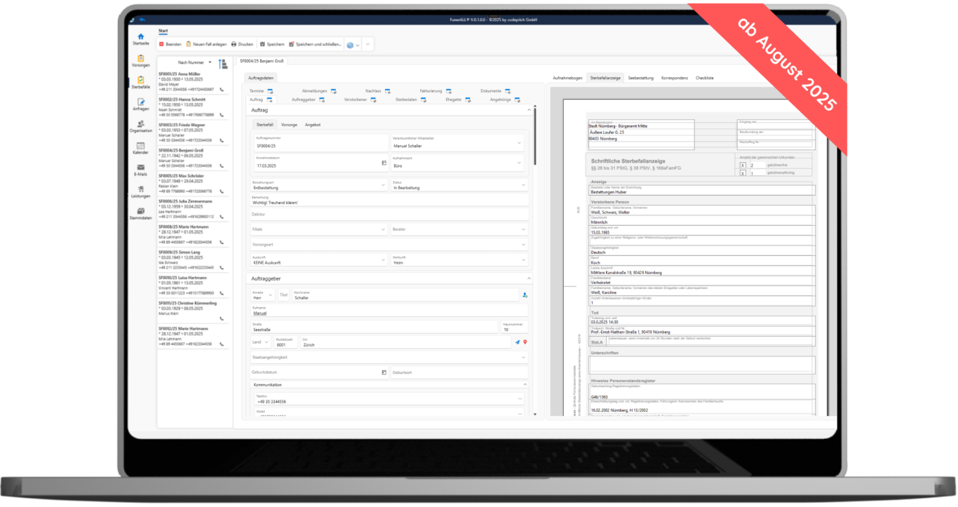 Unser Ziel ist es eine Software zu entwickeln die Ihnen den BestatterALLtag erleichtert. Wir nutzen unsere Expertise und richten uns nach Ihren Bedürfnissen, um die effizienteste Bestattersoftware zu gestalten. Falls Sie Fragen zur Software haben sollten, ist unser Support jederzeit für Sie erreichbar.